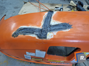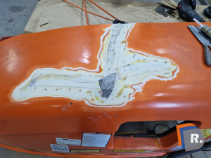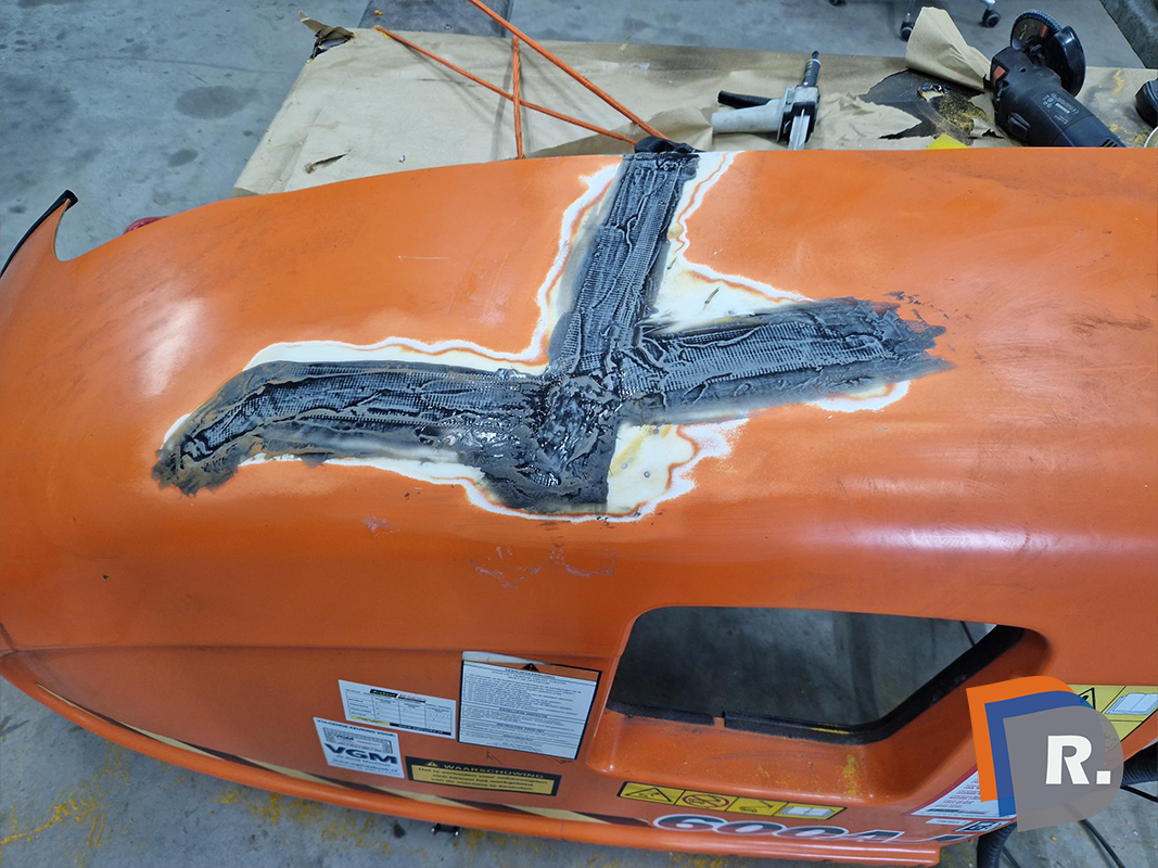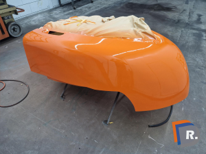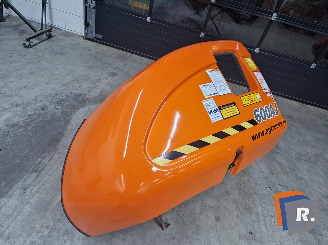 600AJ herstellen en spuiten motorkap met behoud van stickers
